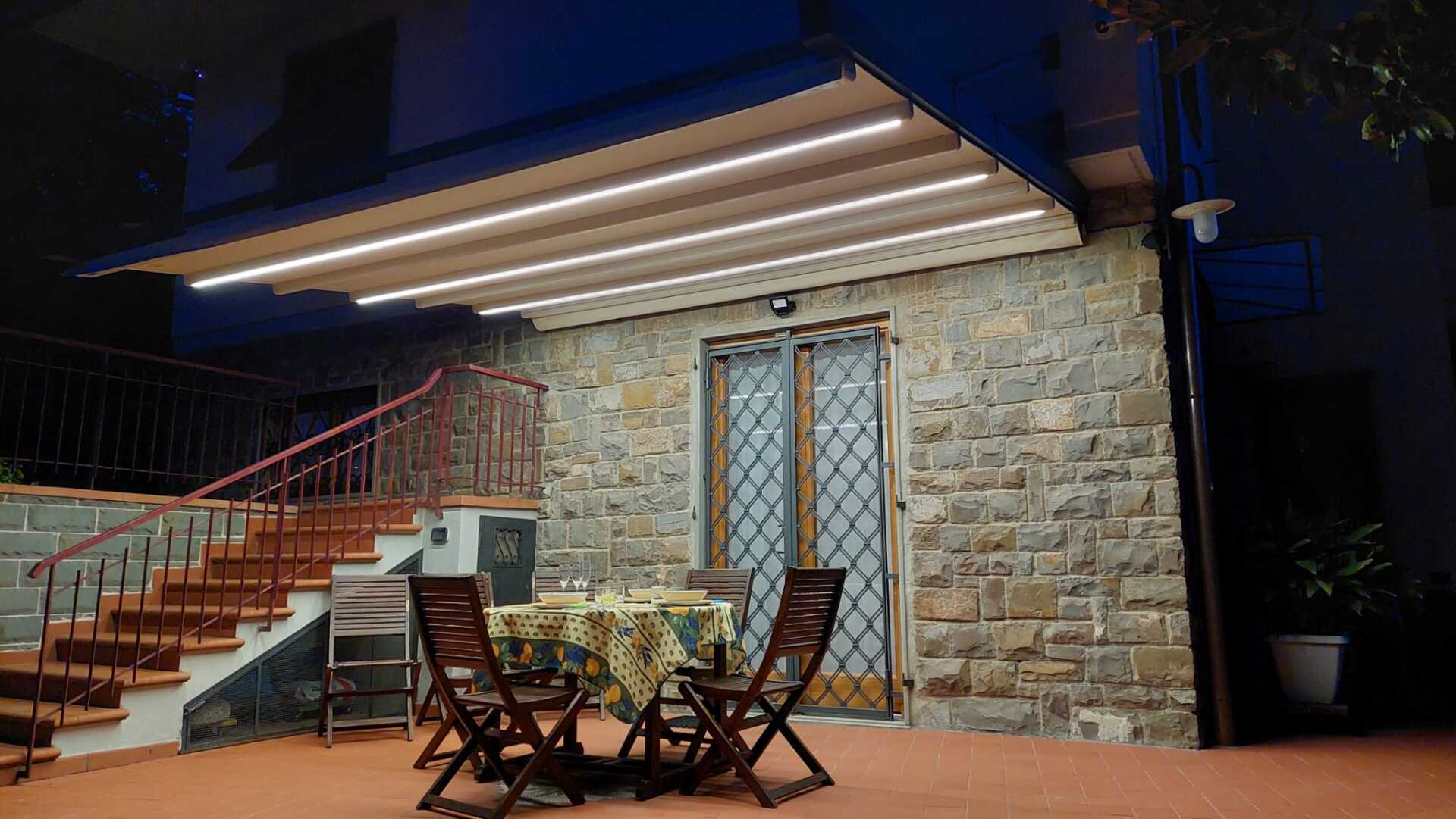 Tende per esterni a caduta, a cappottina, a bracci estensibili, cassonati, con guide laterali o scorrevoli e motorizzate